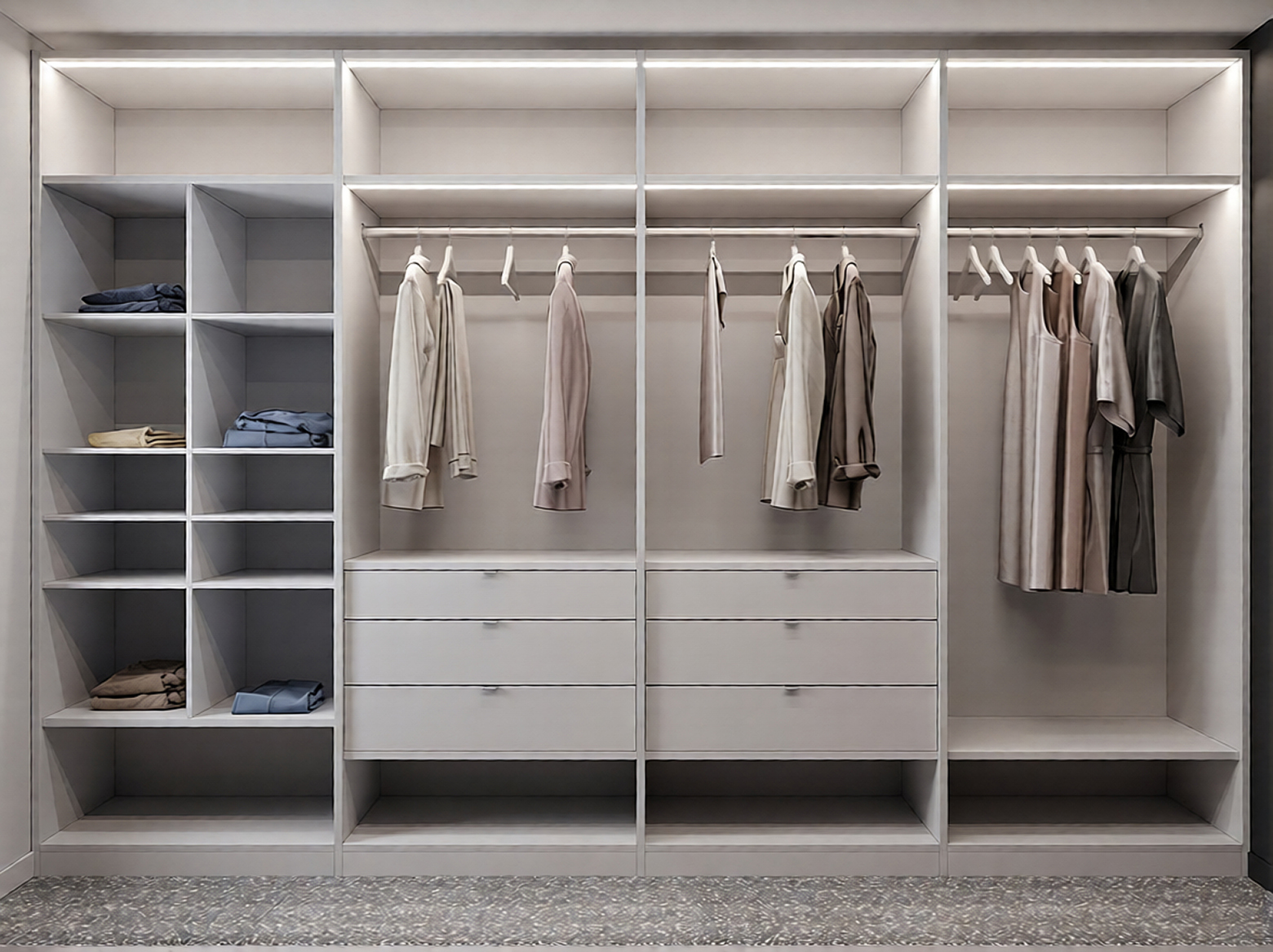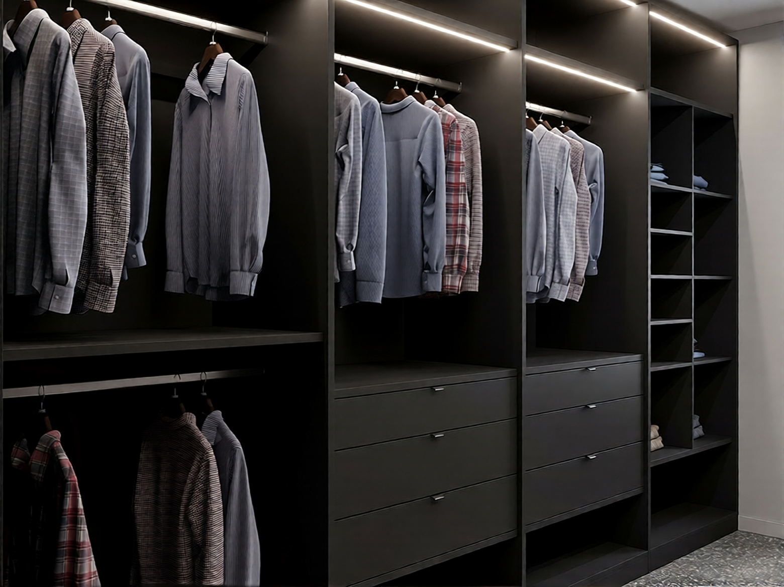 Dressingul YIN YANG combină un design modern cu funcționalitate, împărțind spațiul de depozitare într-un mod captivant, cu o jumătate albă și cealaltă neagră. Această înfățișare contrastantă adaugă un accent vizual remarcabil în orice cameră. Echipat cu iluminare LED, dressingul YIN YANG oferă o vizibilitate optimă, iar rafturile spațioase și sertarele practice asigură o organizare eficientă a hainelor și accesoriilor. Perfect pentru o amenajare inteligentă, dressingul YIN YANG transformă depozitarea într-o experiență plăcută și funcțională.