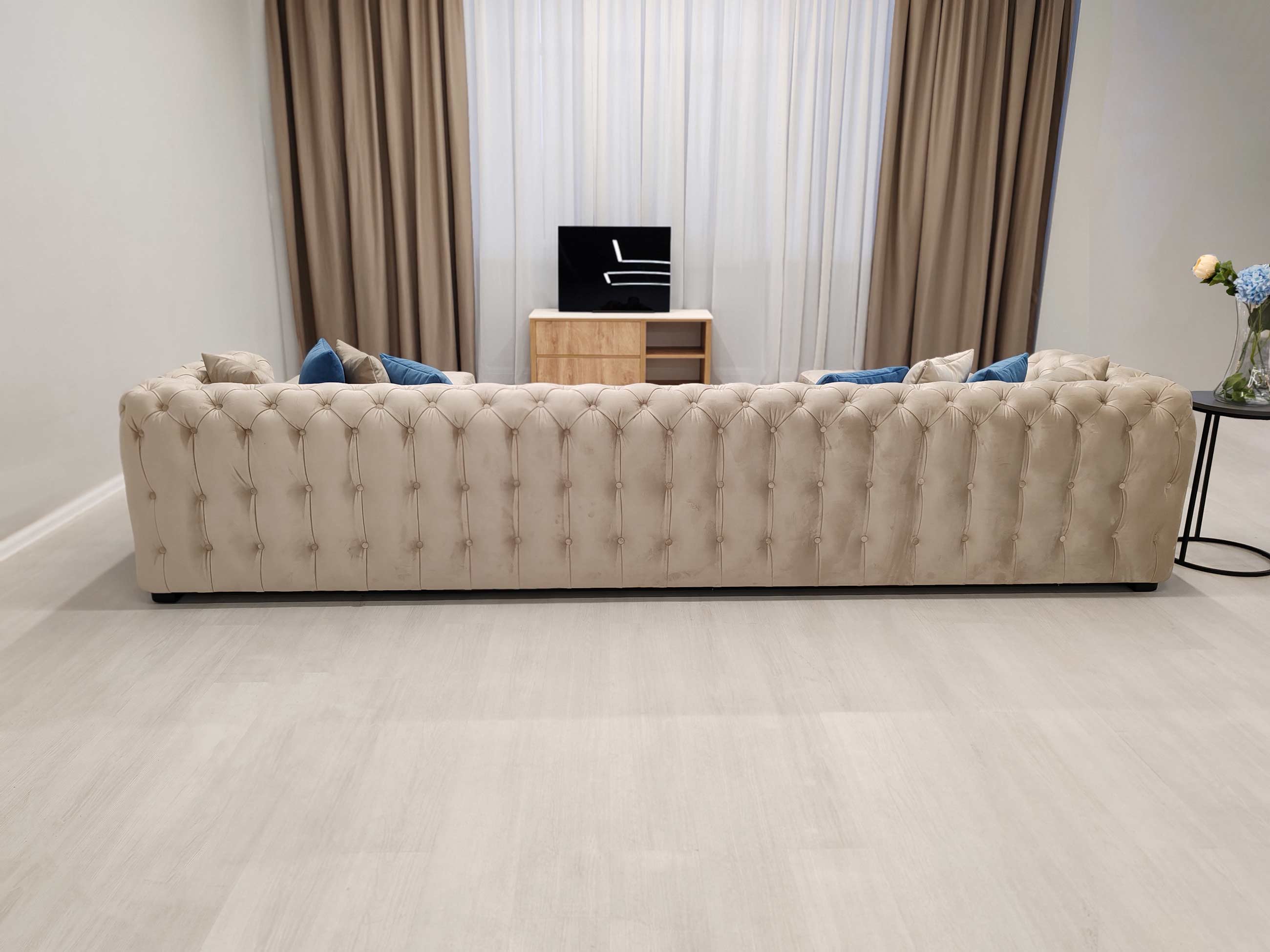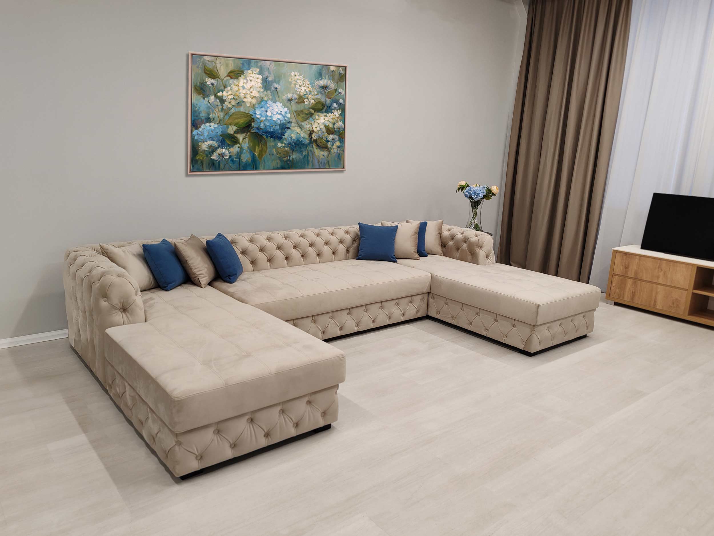 Acest proiect a pornit de la o simplă idee: clientul și-a dorit o "insulă de relaxare" care să domine livingul, combinând eleganța regală a stilului Chesterfield cu liniile curate ale designului contemporan.