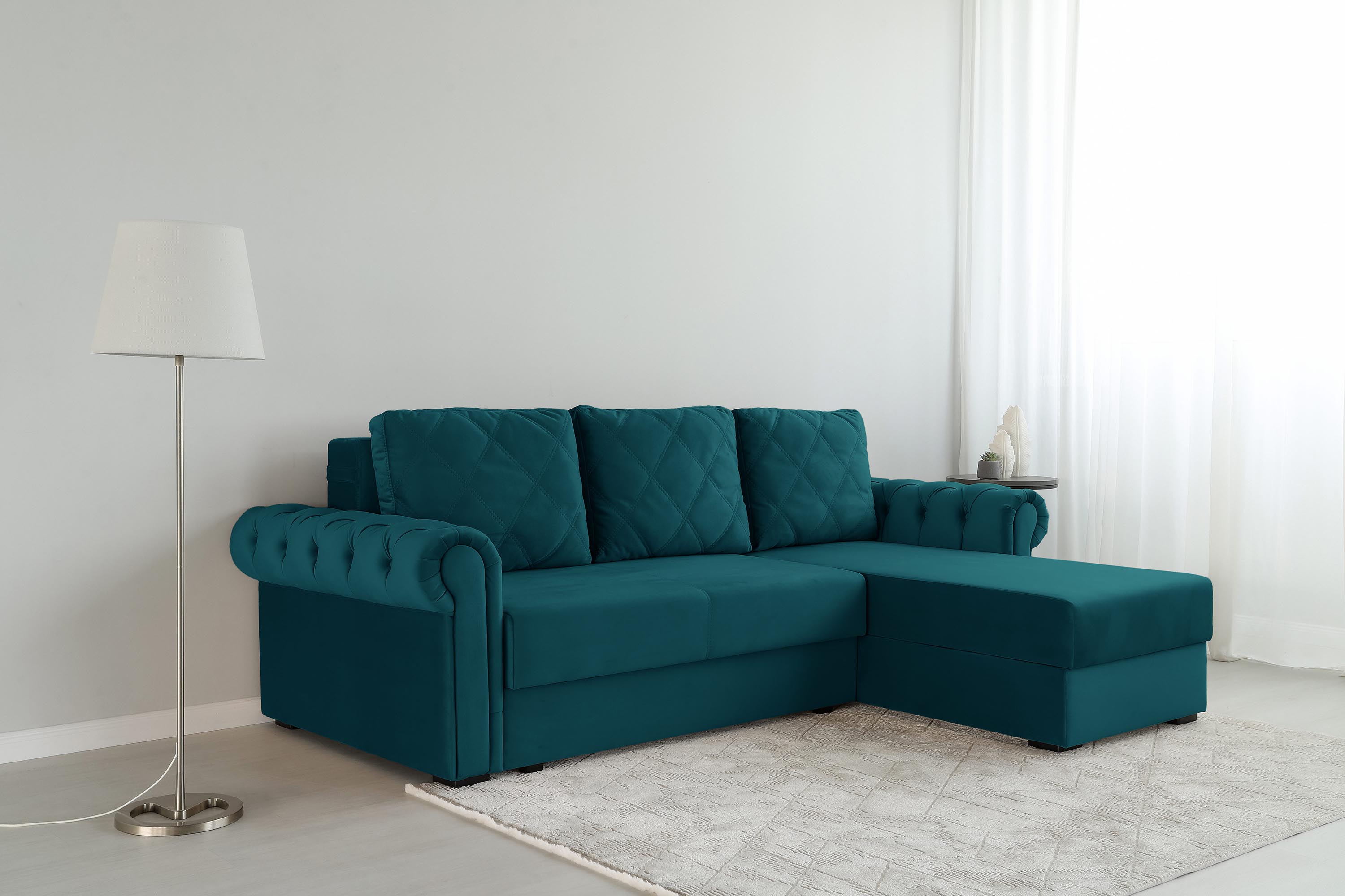 Colțar LUXURY 2, cu ladă de depozitare, 2500x1800x850 mm, suprafața dormit 2000x1600 mm.